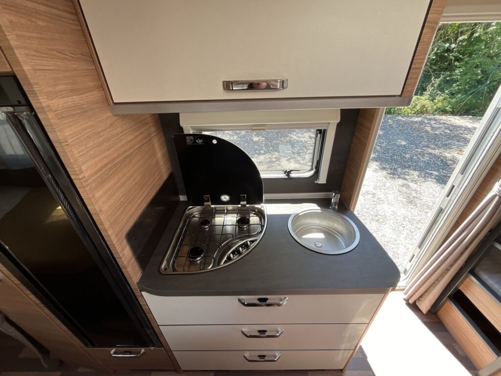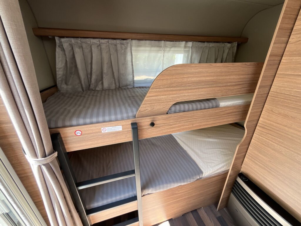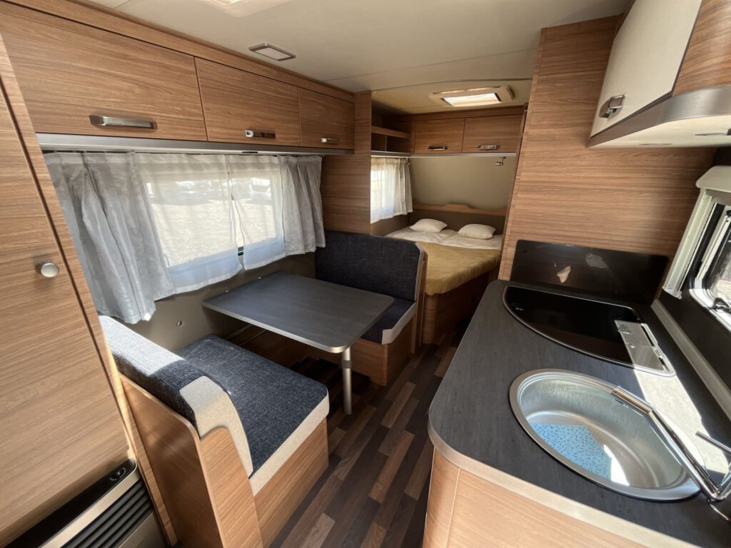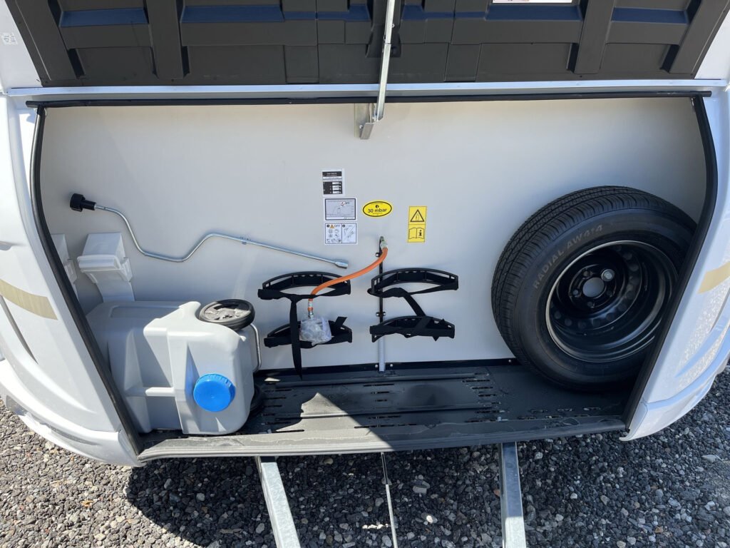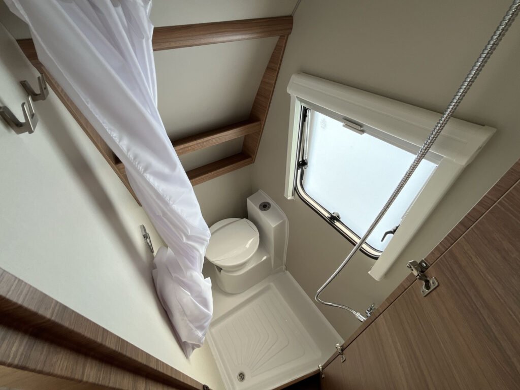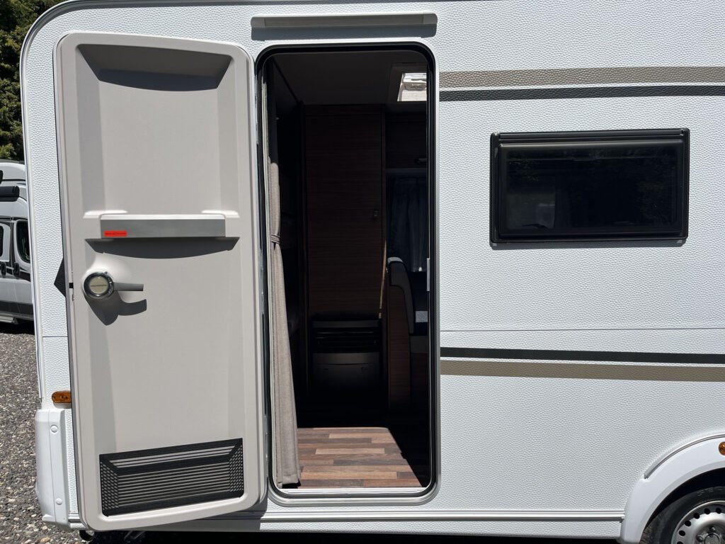 Advanced paket: mobilní odpadní nádrž 25 l, střešní okno Midi Heki 70×50 cm, moskytiéra ve vstupních dveřích, vybavení sprchy, bojler Truma Therme (230 V)