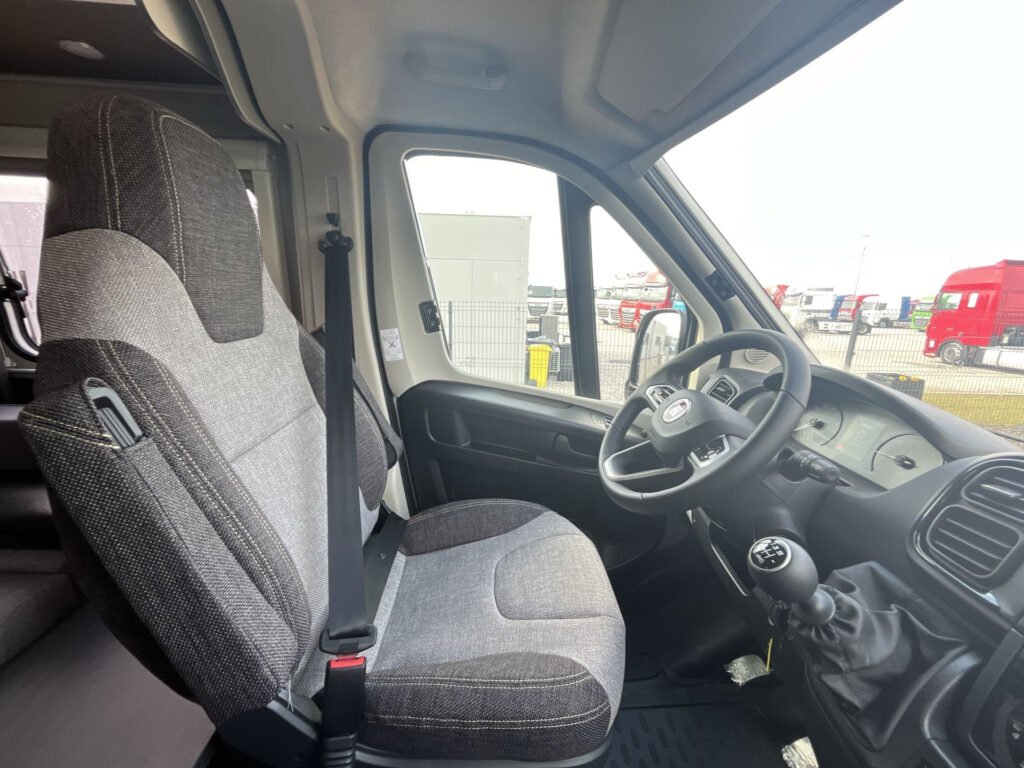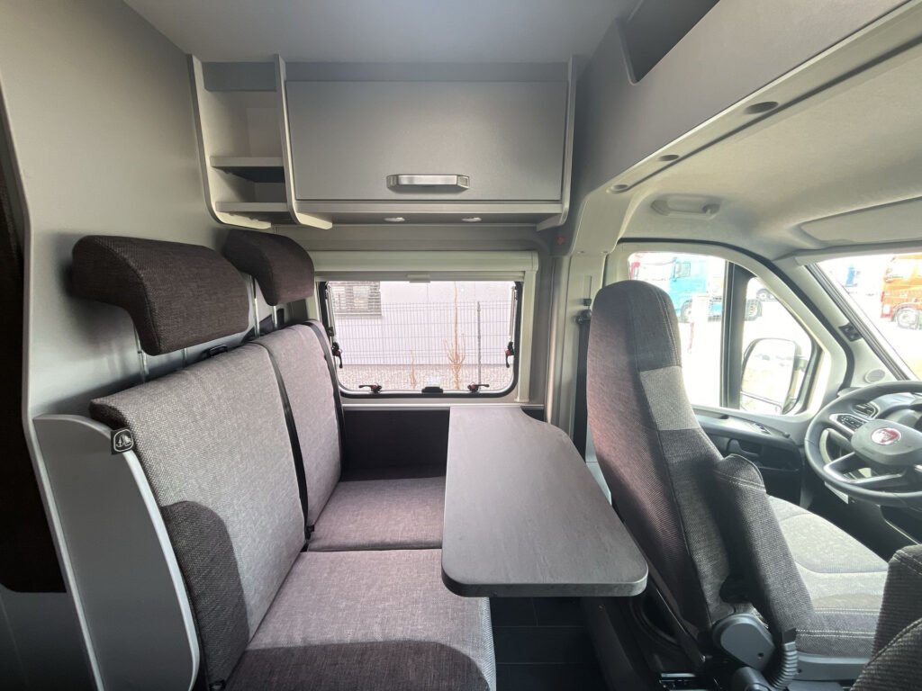 Extra výbava v ceně vozu: moskytiéra vstupních dveří, kožený volant a řadící páka, Trakce Plus Fiat, 16″ kola, nádrž nafty 90 litrů, podvozek Fiat Ducato 3.500 kg, 2.2 l 140 PS; topení Truma Combi E, izolovaná a vyhřívaná odpadní nádrž, dřevěný rošt do sprchy, polstrování Active Rock, prodloužení sedací soupravy, ISOFIX pro 2 dětské sedačky, výsuv mezi zadními lůžky