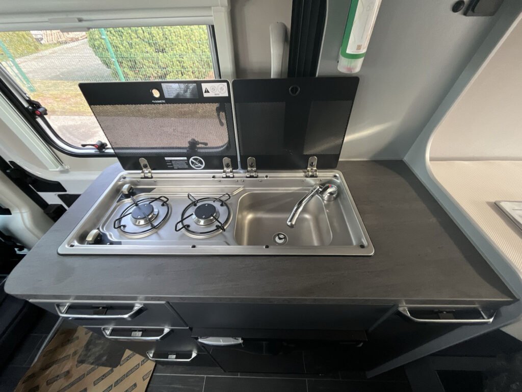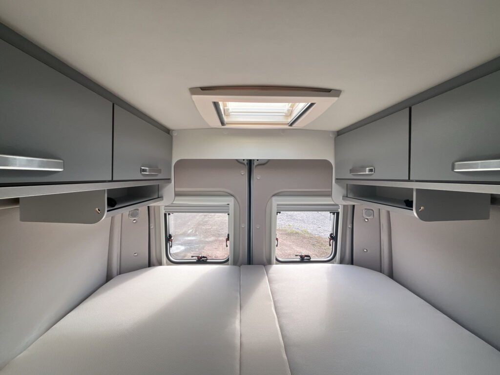 Smart paket: elektrický vstupní schůdek 70 cm, příprava pro radio vč. 2 reproduktorů, digitální panel Truma CP Plus, vodní filtr, Remis žaluzie v kabině řidiče, kombinované roletky na oknech v zadních dveřích