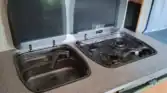Funkční mover na dálkové ovládání, plynové topeni rozfukem, včetně plynoveho vařiče, dřez s tekouci vodou , umyvatko s tekouci vodou, v sedaci casti nádrž na vodu.